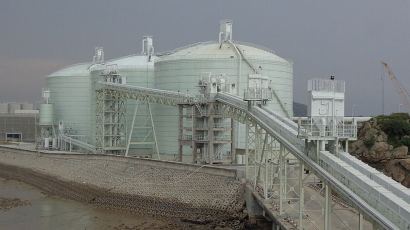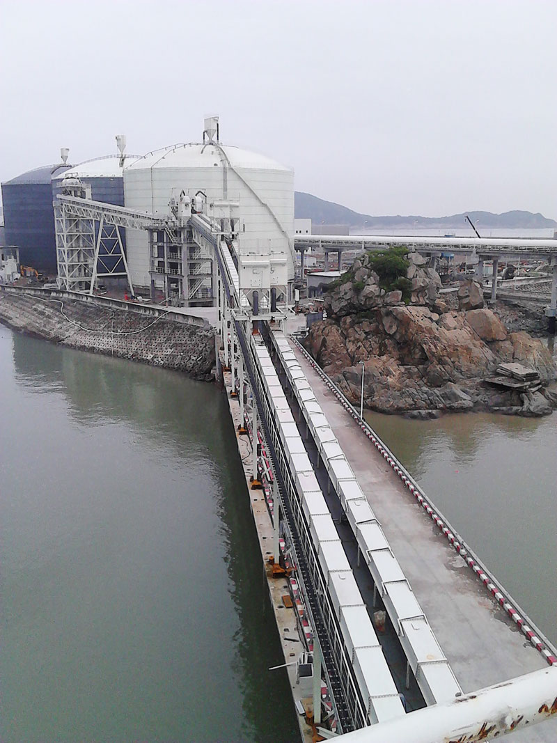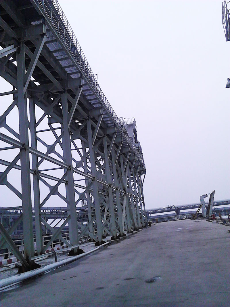 該工程項目地點位于臨海的浙江蒼南,包含3座46米直徑的5萬噸鋼板倉儲庫及一臺800t/h、3000噸級的移動式裝船機;它將原本廢棄的粉煤灰通過船運散裝運輸出廠,既能夠解決電廠粉煤灰排放和環境污染問題,同時也為業主產生了一定的經濟效益。