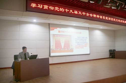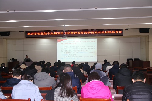 為深入學習貫徹黨的十九屆五中全會精神,按照省政府國資委黨委統一部署,12月15日上午,公司召開學習貫徹黨的十九屆五中全會精神省委宣講團報告會。省委宣講團成員、武漢大學經濟與管理學院范如國教授來公司作宣講報告。會議由黨群工作部部長鄭雯主持,公司領導、黨員干部共計70余人參加宣講報告會。