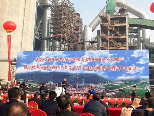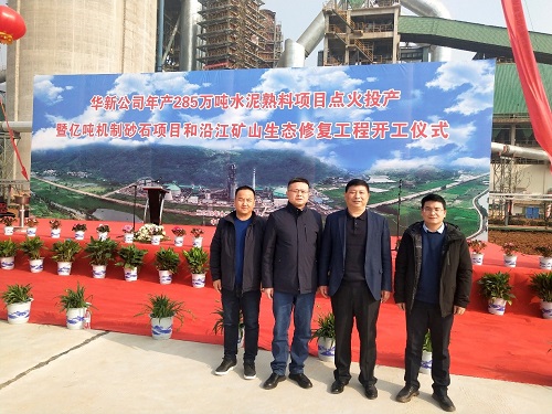 2020年12月28日,我公司姚元君董事長受邀參加華新水泥股份有限公司年產285萬噸水泥熟料項目點火投產暨億噸機制砂石項目和沿江礦山生態修復工程開工儀式。