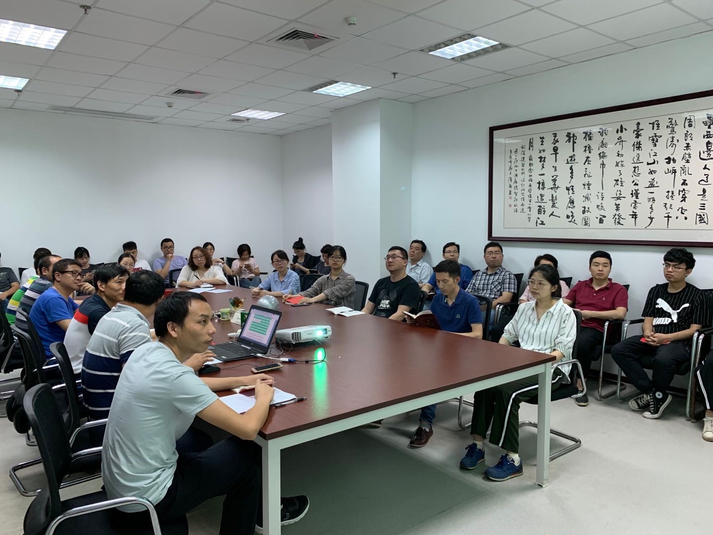 為深入貫徹落實黨的十九大精神,推進黨建工作向縱深發展,進一步加強基層黨組織建設,充分發揮基層黨支部戰斗堡壘作用,按照公司黨委工作部署,結合黨群部工作安排,第二黨支部于2019年06月18日下午開展主題為“鼓勁揚帆再出發——全面開展‘不忘初心、牢記使命’主題教育”的支部主題黨日活動。活動由支部書記張思慧主持,應到正式黨員34人,實到正式黨員30人,入黨積極分子5人。公司黨委委員、副總經理吳衛平同志以普通黨員身份參加了此次主題黨日活動。