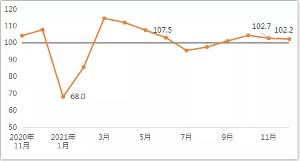 圖1 ?建筑材料工業(yè)月度景氣指數(shù)