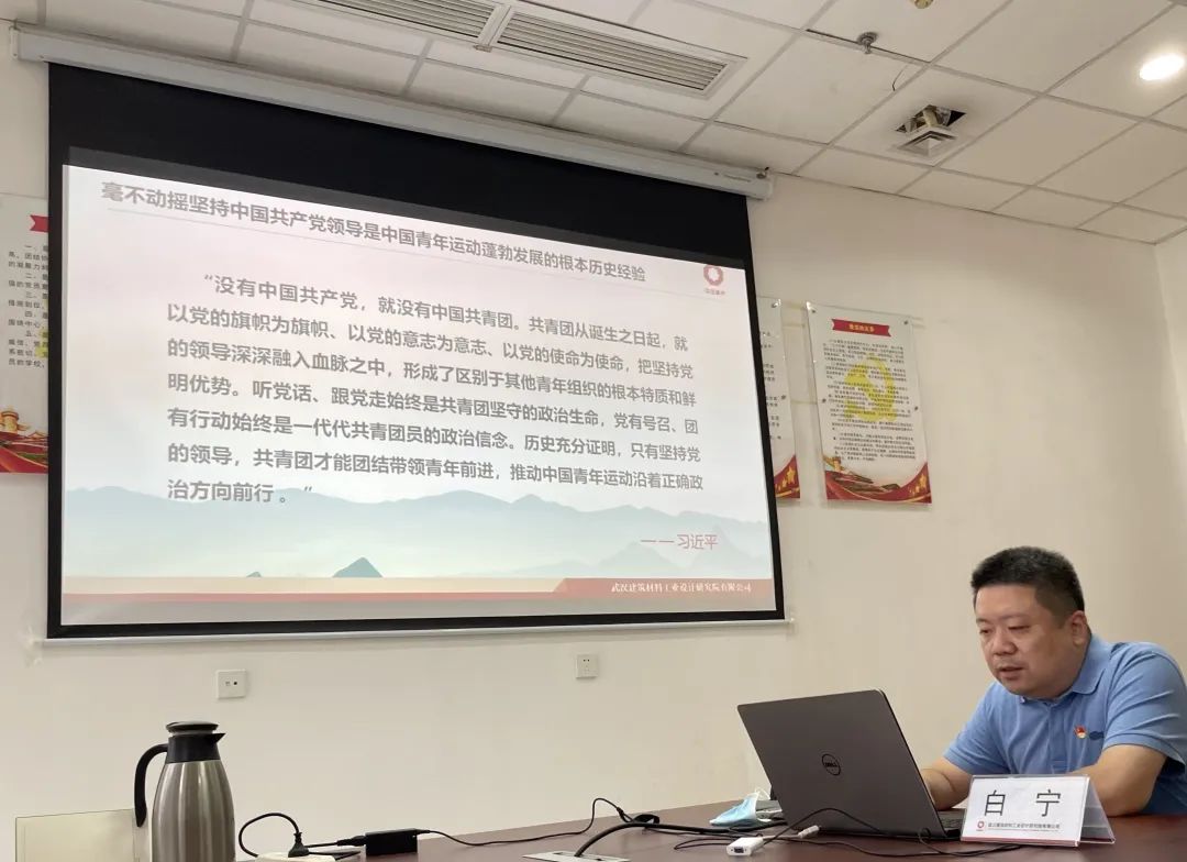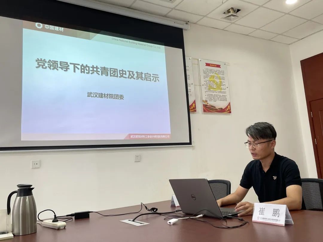 為持續深入貫徹落實習近平總書記關于共青團和青年工作重要講話和指示批示精神,團結動員廣大青年在思想洗禮、在實踐鍛造中不斷增強做中國人的志氣、骨氣、底氣,始終聽黨話、跟黨走,在實現中華民族偉大復興的賽道上踔厲奮發、勇毅前行,9月13日下午,武漢建筑材料工業設計研究院有限公司團委按照《中國建材集團青年精神素養提升工程工作方案》具體部署要求,開展“黨委書記指導學”活動,由黨委書記、副總經理白寧、團委書記崔鵬為青年團員講授主題團課。